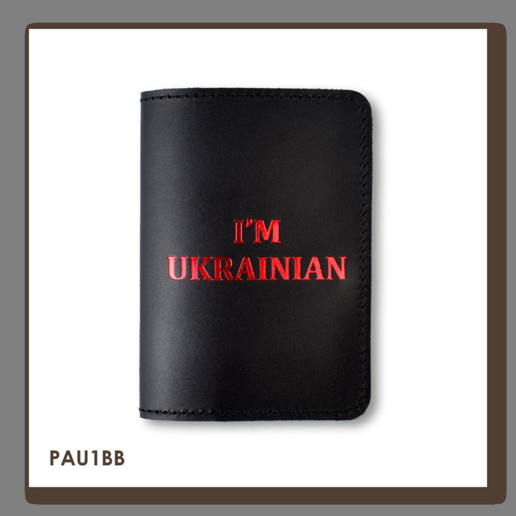 PAU1BB Babylon Обкладинка для паспорта I AM UKRAINIAN 10x14 см чорна, червоне тиснення, шкіра