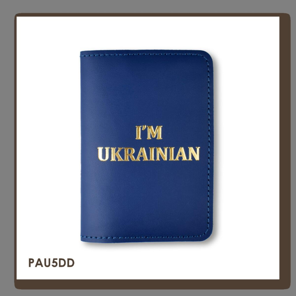 PAU5DD Babylon Обкладинка для паспорта I AM UKRAINIAN 10x14 см синя, золоте тиснення, шкіра