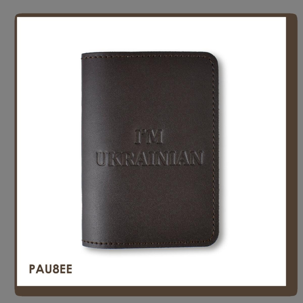 PAU8EE Babylon Обкладинка для паспорта I AM UKRAINIAN 10x14 см темно-коричнева, чисте тиснення, шкіра