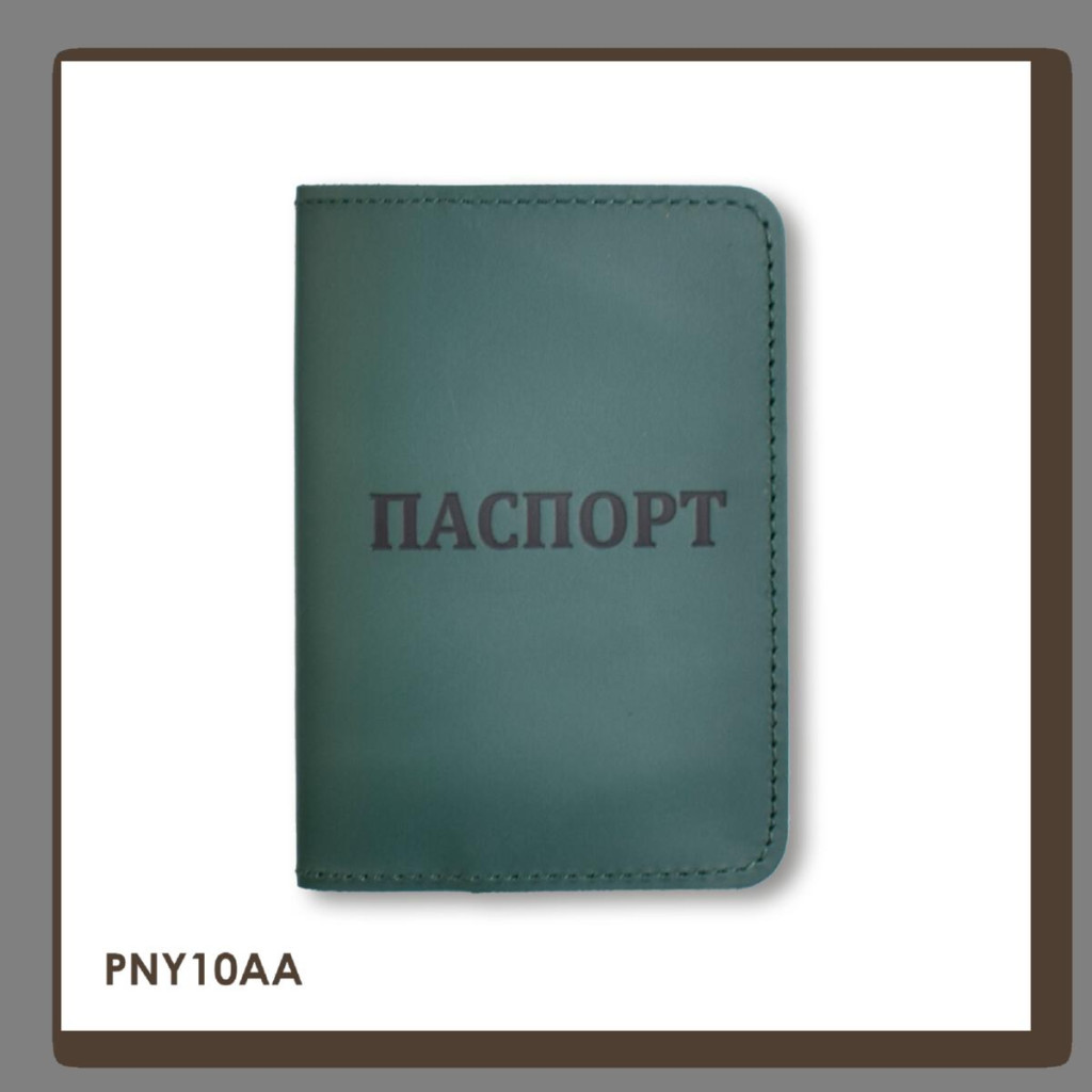 PNY10AA Babylon Обкладинка для паспорта з написом ПАСПОРТ 10x14 см зелена, чорне тиснення, шкіра