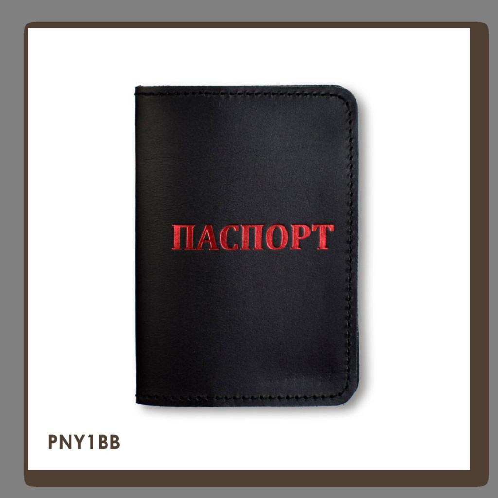 PNY1BB Babylon Обкладинка для паспорта з написом ПАСПОРТ 10x14 см чорна, червоне тиснення, шкіра
