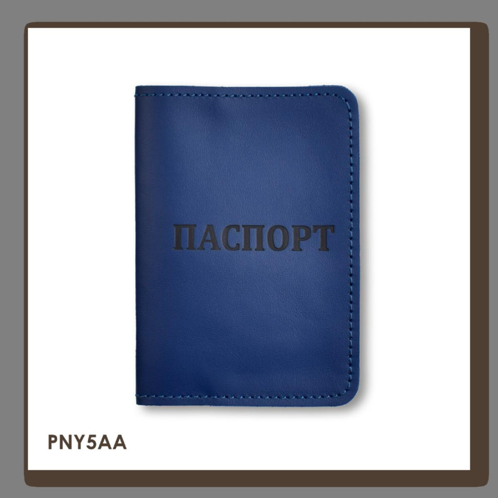 PNY5AA Babylon Обкладинка для паспорта з написом ПАСПОРТ 10x14 см синя, чорне тиснення, шкіра