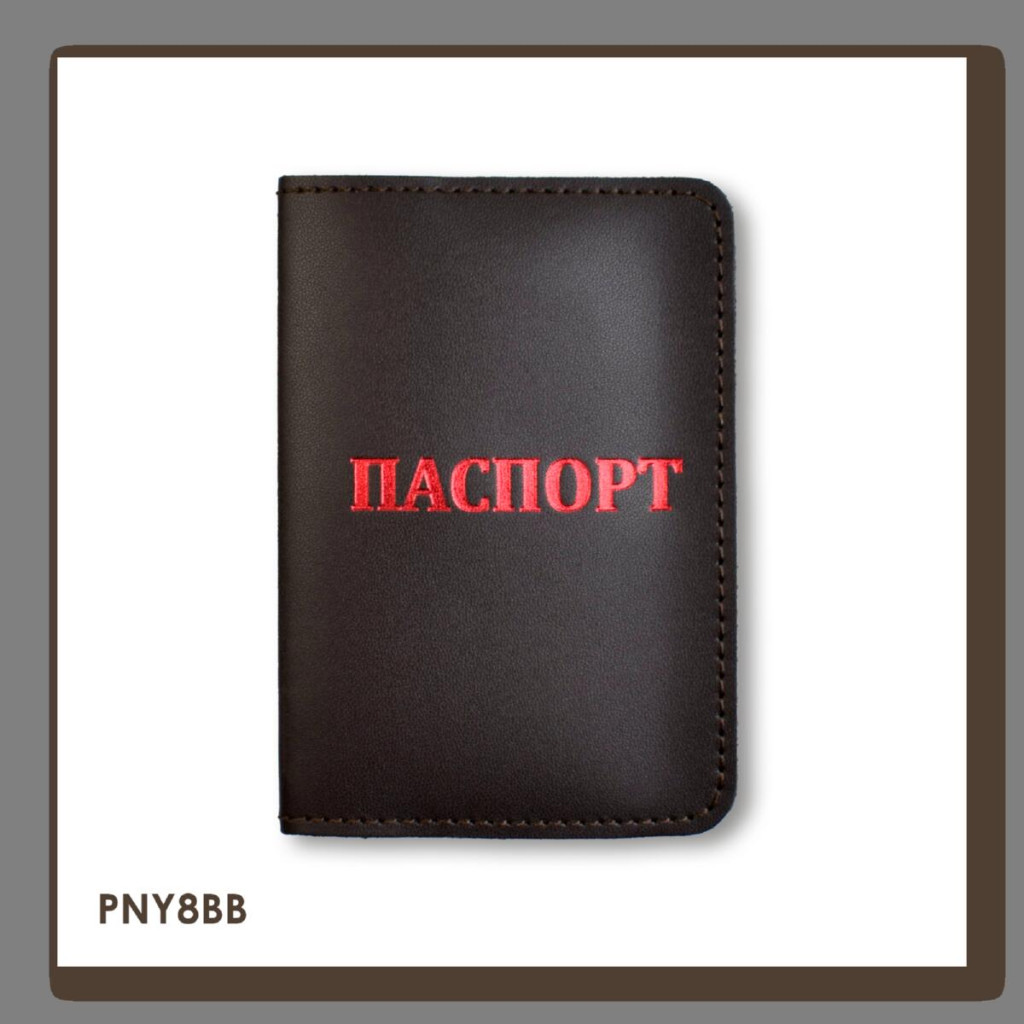 PNY8BB Babylon Обкладинка для паспорта з написом ПАСПОРТ 10x14 см темно-коричнева, червоне тиснення, шкіра