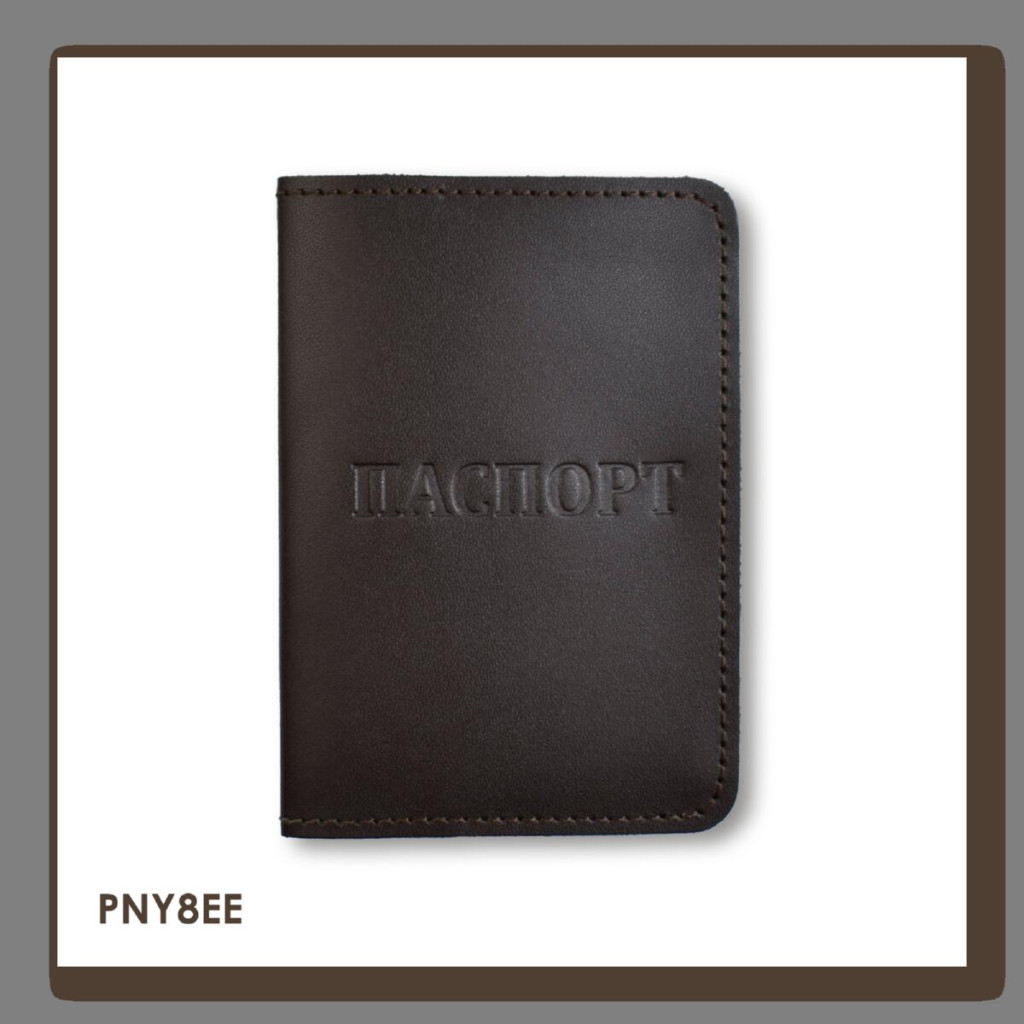 PNY8EE Babylon Обкладинка для паспорта з написом ПАСПОРТ 10x14 см темно-коричнева, чисте тиснення, шкіра
