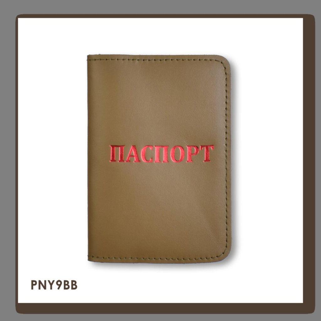 PNY9BB Babylon Обкладинка для паспорта з написом ПАСПОРТ 10x14 см хакі, червоне тиснення, шкіра
