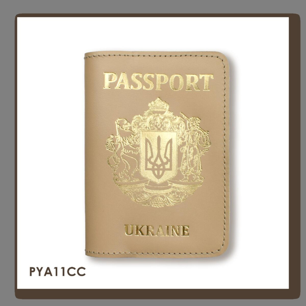 PYA11DD Babylon Обкладинка для паспорта Passport з великим Гербом 10x14 см бежева, золоте тиснення, шкіра