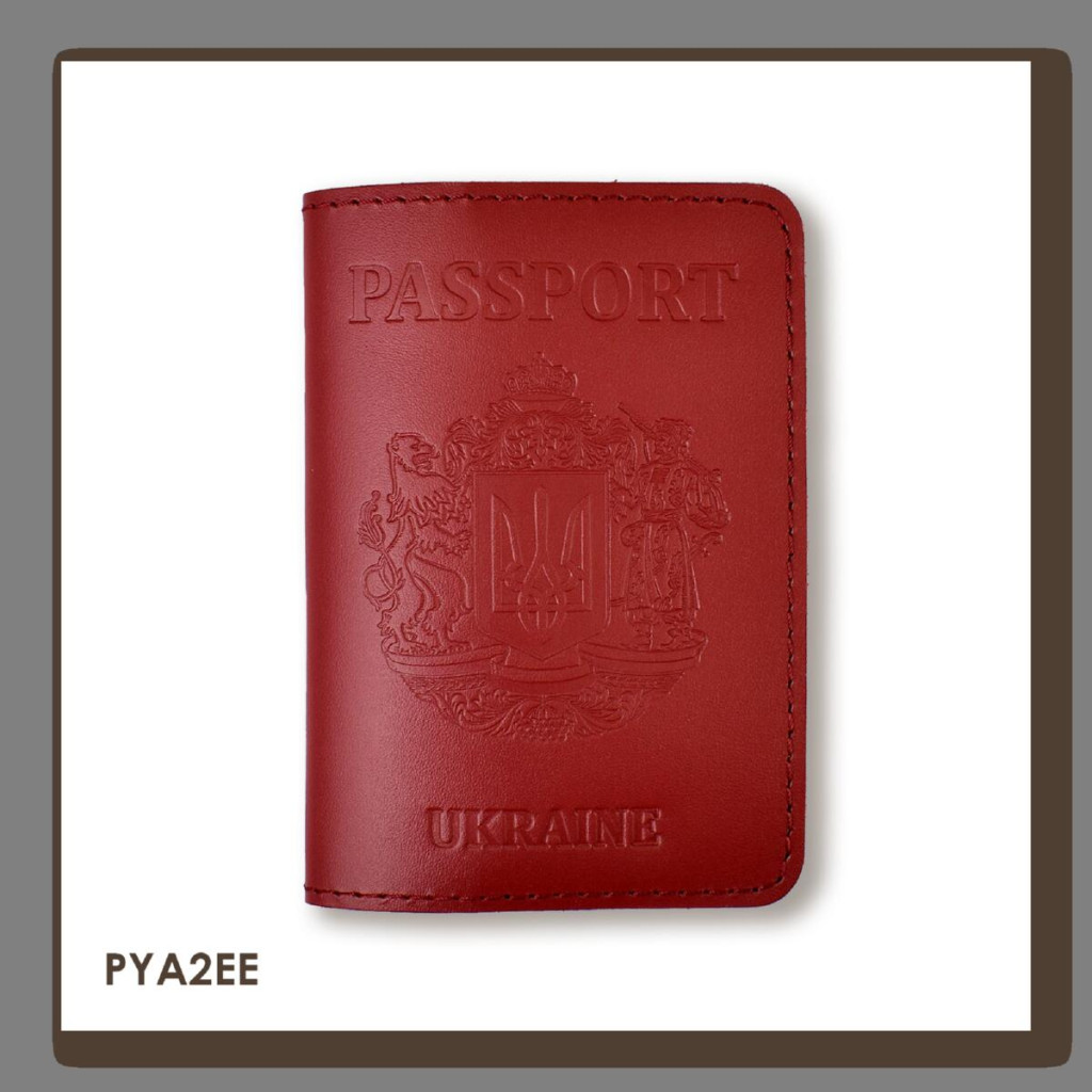 PYA2EE Babylon Обкладинка для паспорта Passport з великим Гербом 10x14 см червона, чисте тиснення, шкіра
