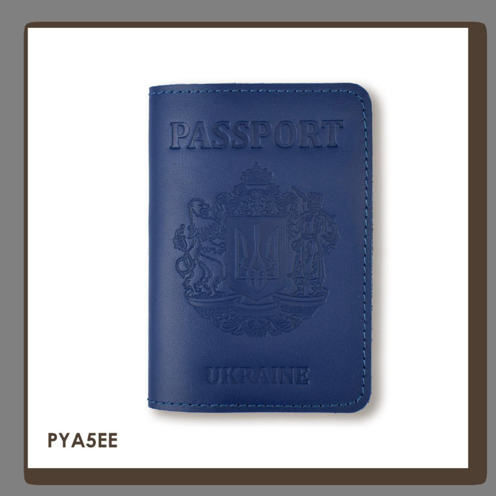 PYA5EE Babylon Обкладинка для паспорта Passport з великим Гербом 10x14 см синя, чисте тиснення, шкіра