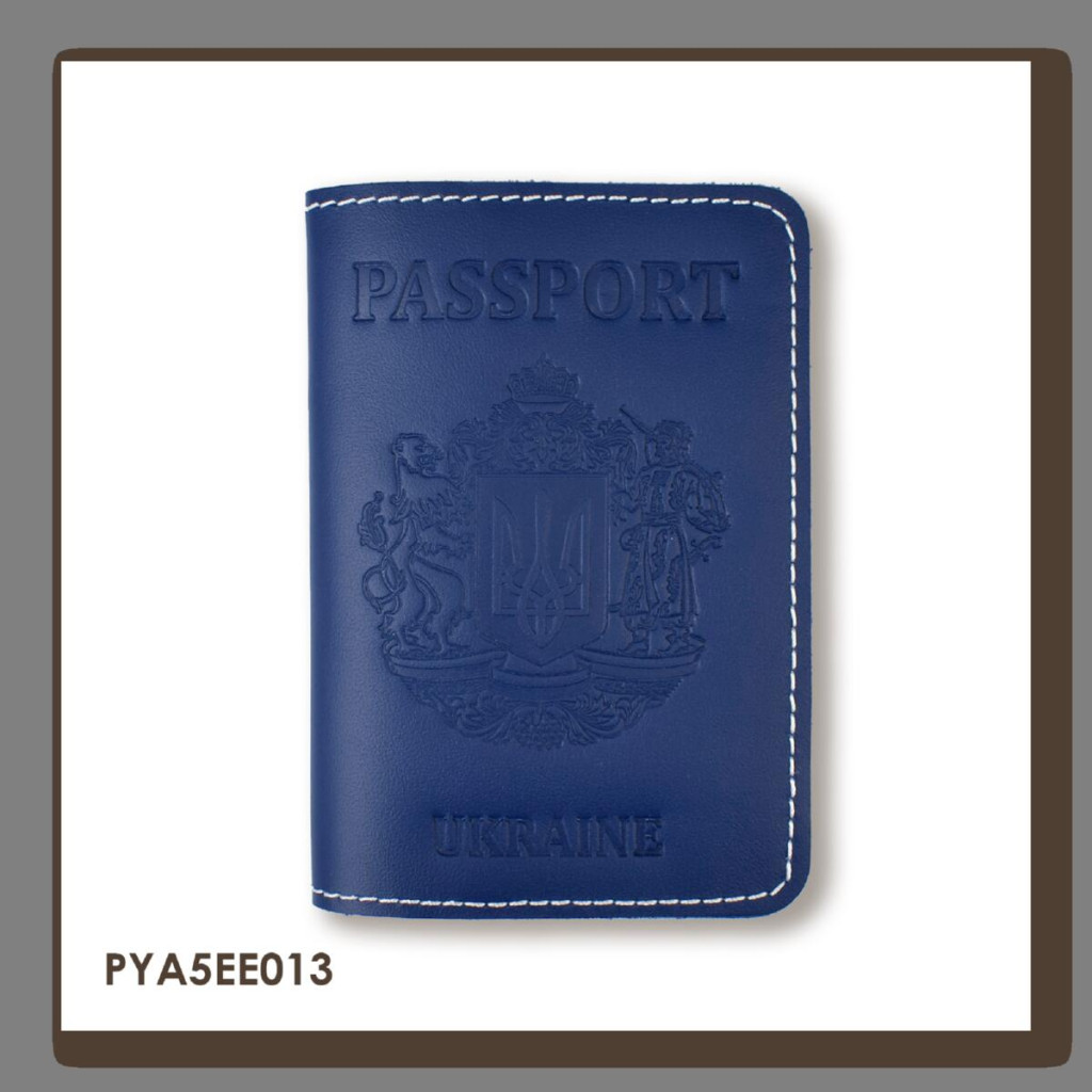 PYA5EE013 Babylon Обкладинка для паспорта Passport з великим Гербом 10x14 см синя, чисте тиснення, біла нитка, шкіра