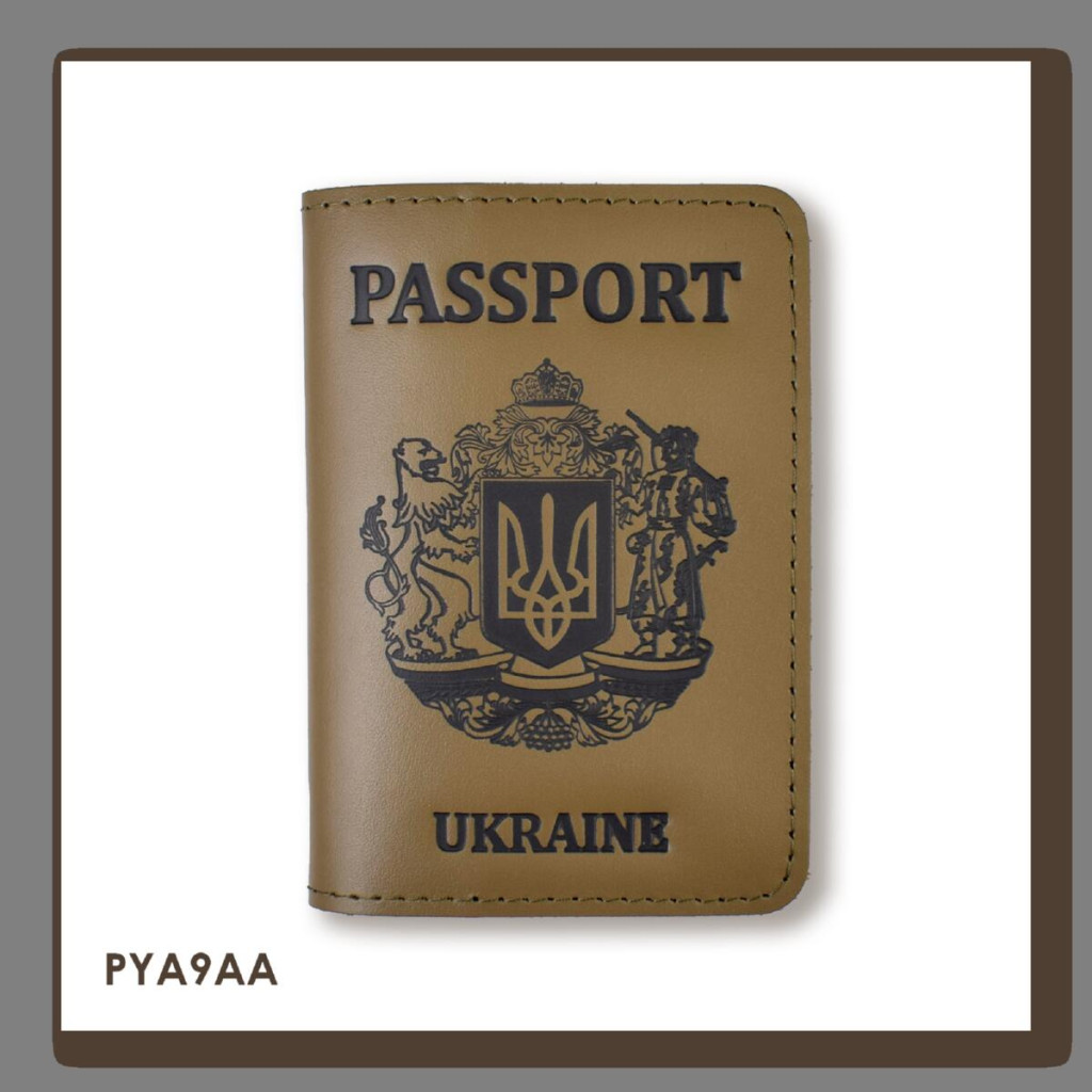 PYA9AA Babylon Обкладинка для паспорта Passport з великим Гербом 10x14 см хакі, чорне тиснення, шкіра