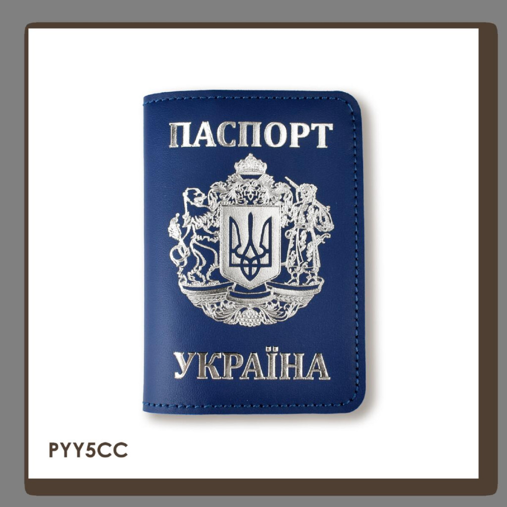 PYY5СС Babylon Обкладинка для паспорта Україна з великим Гербом 10x14 см синя, срібне тиснення, шкіра