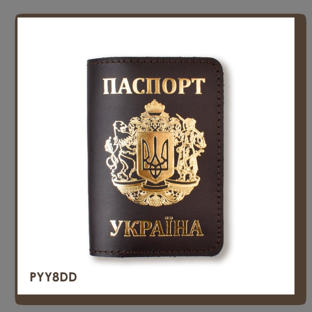 PYY8DD Babylon Обкладинка для паспорта Україна з великим Гербом 10x14 см темно-коричнева, золоте тиснення, шкіра