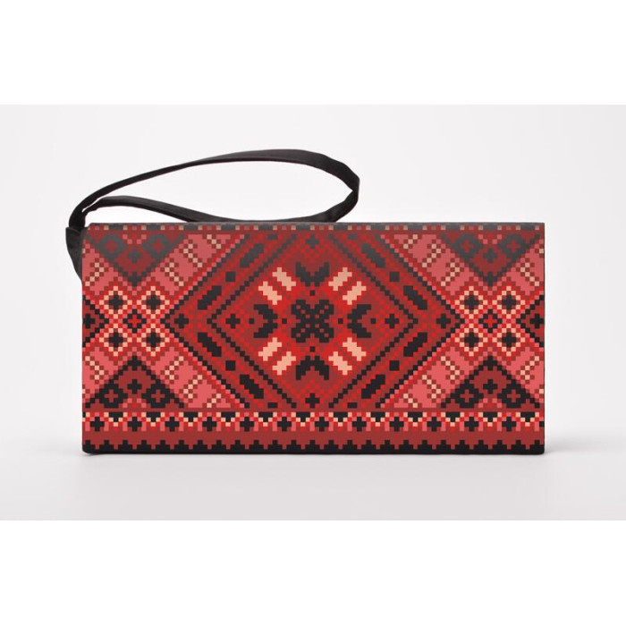 КЛ089шБ1301 Барвиста вишиванка Заготовка для вишивки - Клатч Борщівська сучасна 21x13 см шовк, білий