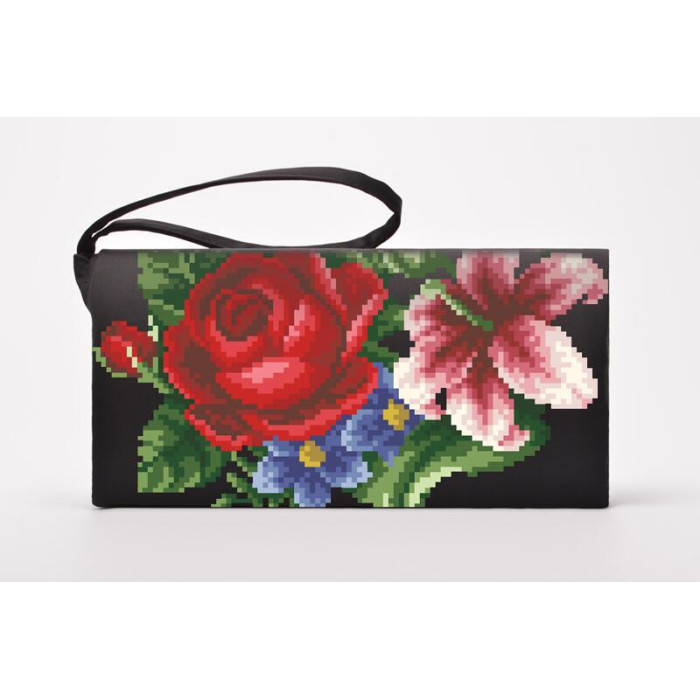 КЛ185хЧ1301 Барвиста вишиванка Заготовка для вишивки - Клатч Лілії. Орнамент 21x13 см батист, чорний