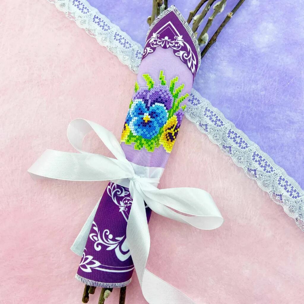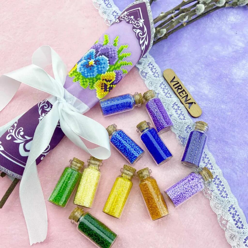 Набір Virena створений для вишивки бісером хустки для оздоблення букета на Великдень. Основа з габардину має проклеювання флізеліном у місцях вишивки, що допомагає зберігати форму та робить процес зручнішим. Зрізи хустки обметані. Малюнок водостійкий, а схема чітка, з насиченими кольорами та високою якістю друку, що полегшує роботу та допомагає отримати охайний результат.