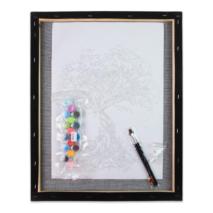 • бавовняне полотно чорного кольору на дерев'яному підрамнику з пронумерованими контурами;