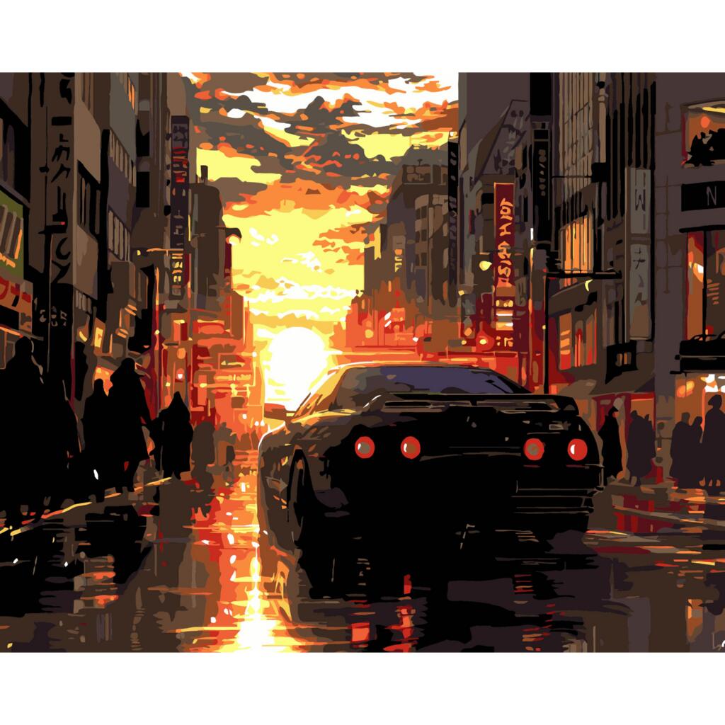 AH1178-17 Strateg Картина за номерами - Авто на заході 40x50 см (на чорному фоні, Стратег)