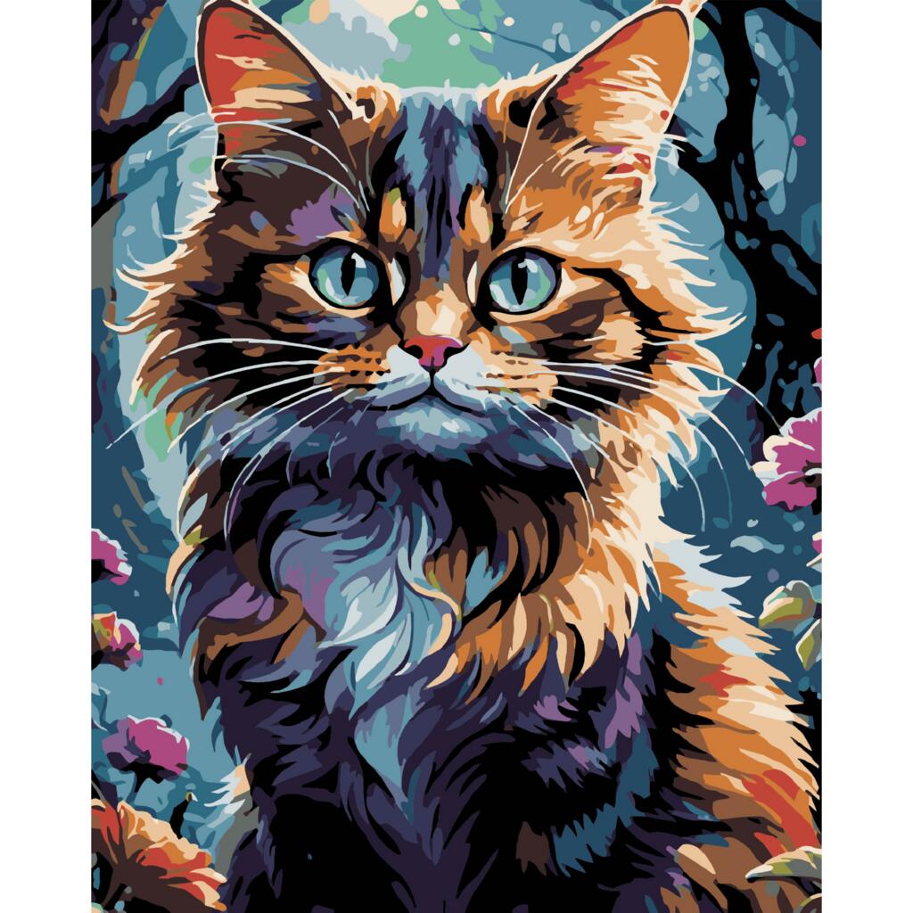 AH1182-19 Strateg Картина за номерами - Кіт в саду 40x50 см (на чорному фоні, Стратег)