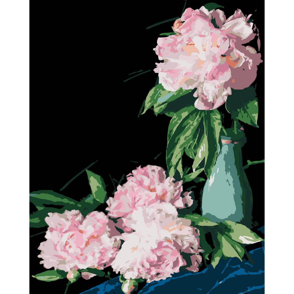 AH1186-18 Strateg Картина за номерами - Рожеві півонії 40x50 см (на чорному фоні, Стратег)