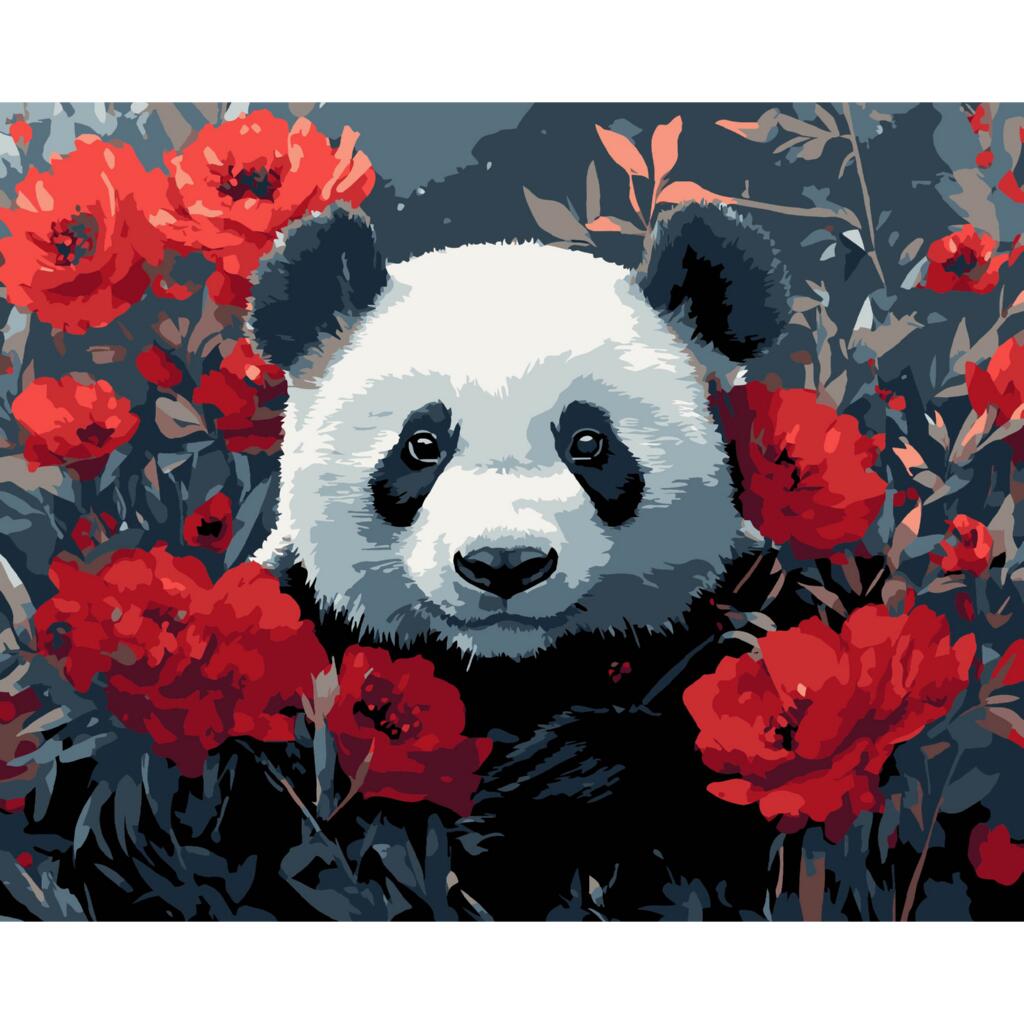 AH1197-15 Strateg Картина за номерами - Панда в маках 40x50 см (на чорному фоні, Стратег)