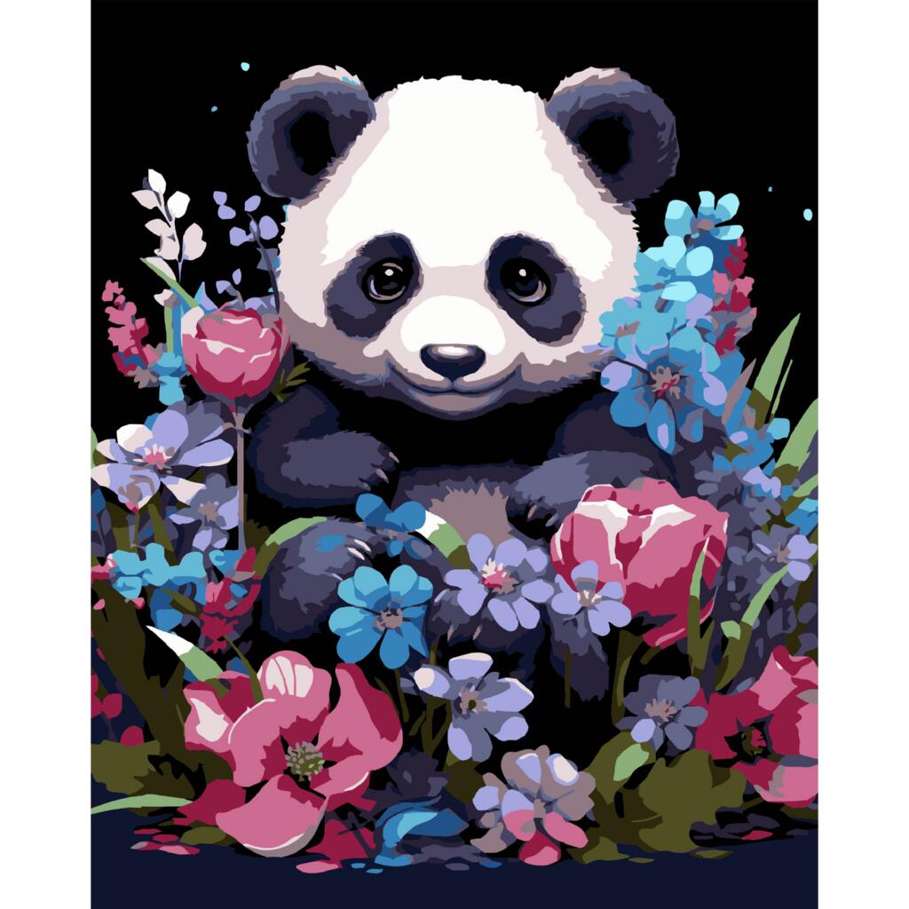 AH1203-17 Strateg Картина за номерами - Весняна панда 40x50 см (на чорному фоні, Стратег)