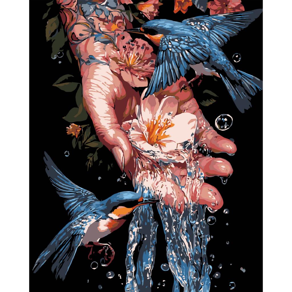 AH1204-17 Strateg Картина за номерами - Сині птахи 40x50 см (на чорному фоні, Стратег)