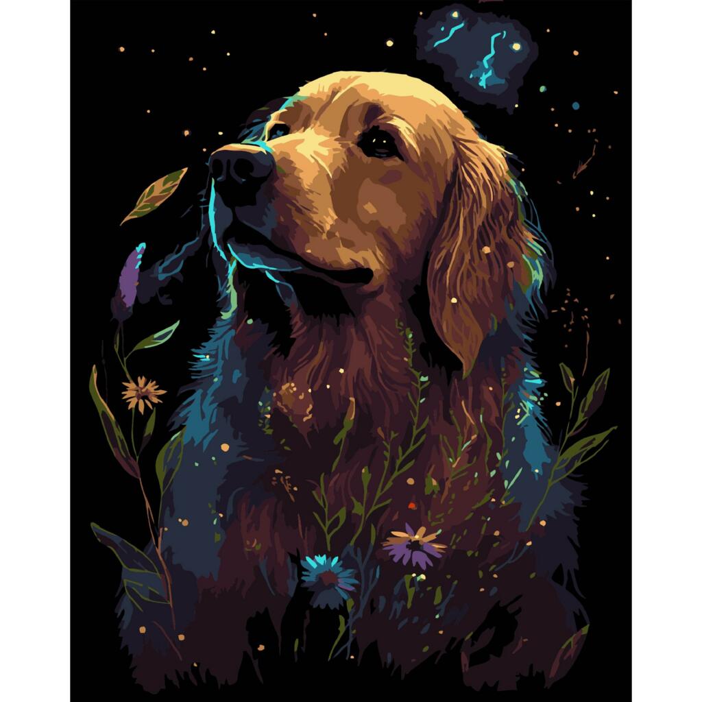 AH1206-17 Strateg Картина за номерами - Золотий ретривер 40x50 см (на чорному фоні, Стратег)