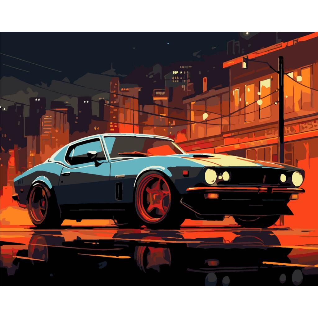 AH1217-18 Strateg Картина за номерами - Міський Мустанг 40x50 см (на чорному фоні, Стратег)