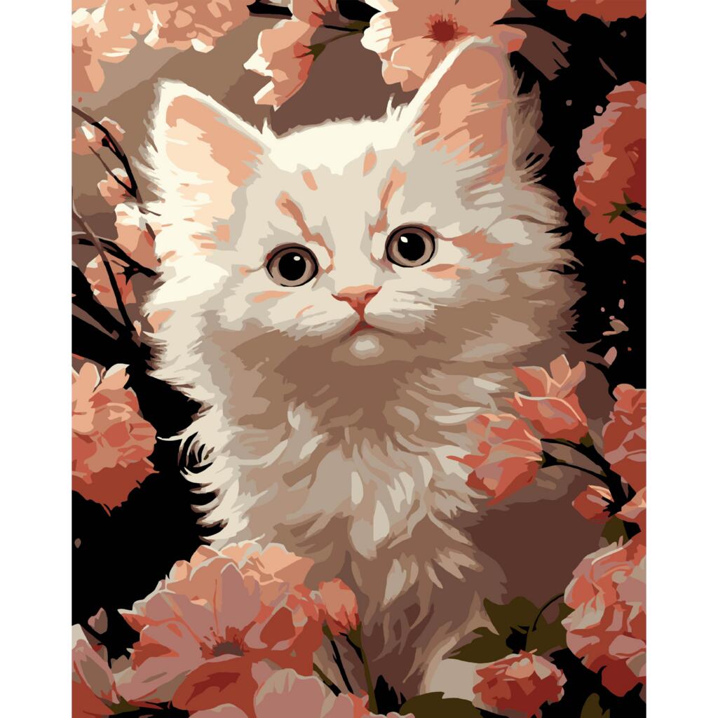 AH1229-17 Strateg Картина за номерами - Біле кошеня 40x50 см (на чорному фоні, Стратег)