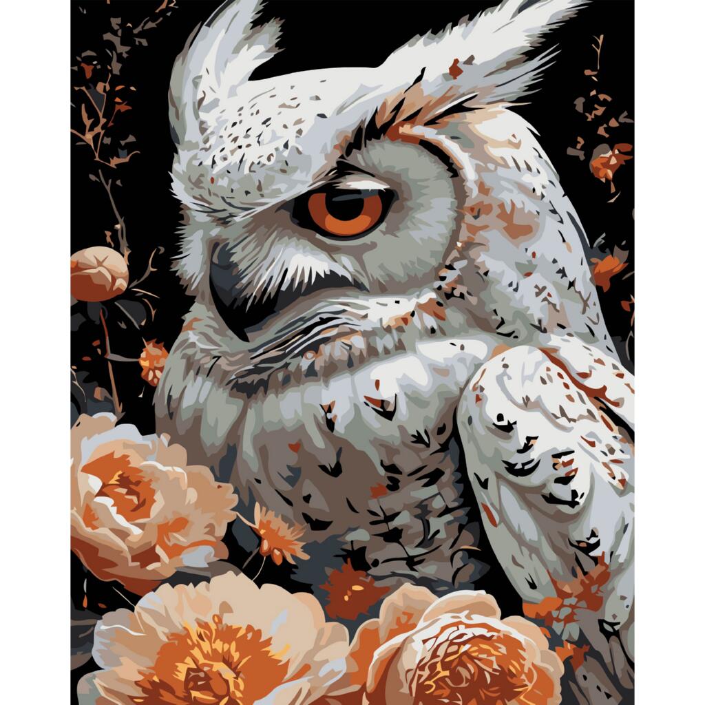 AH1237 Strateg Картина за номерами - Біла сова 40x50 см (на чорному фоні, Стратег)