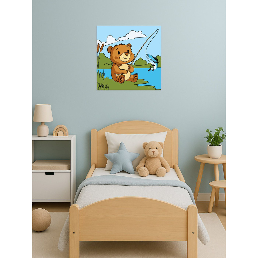 KHO1085 Ideyka Картина за номерами - Ведмедик риболов 25x25 см, (на підрамнику, Ідейка KHO1085) ©art_selena_ua