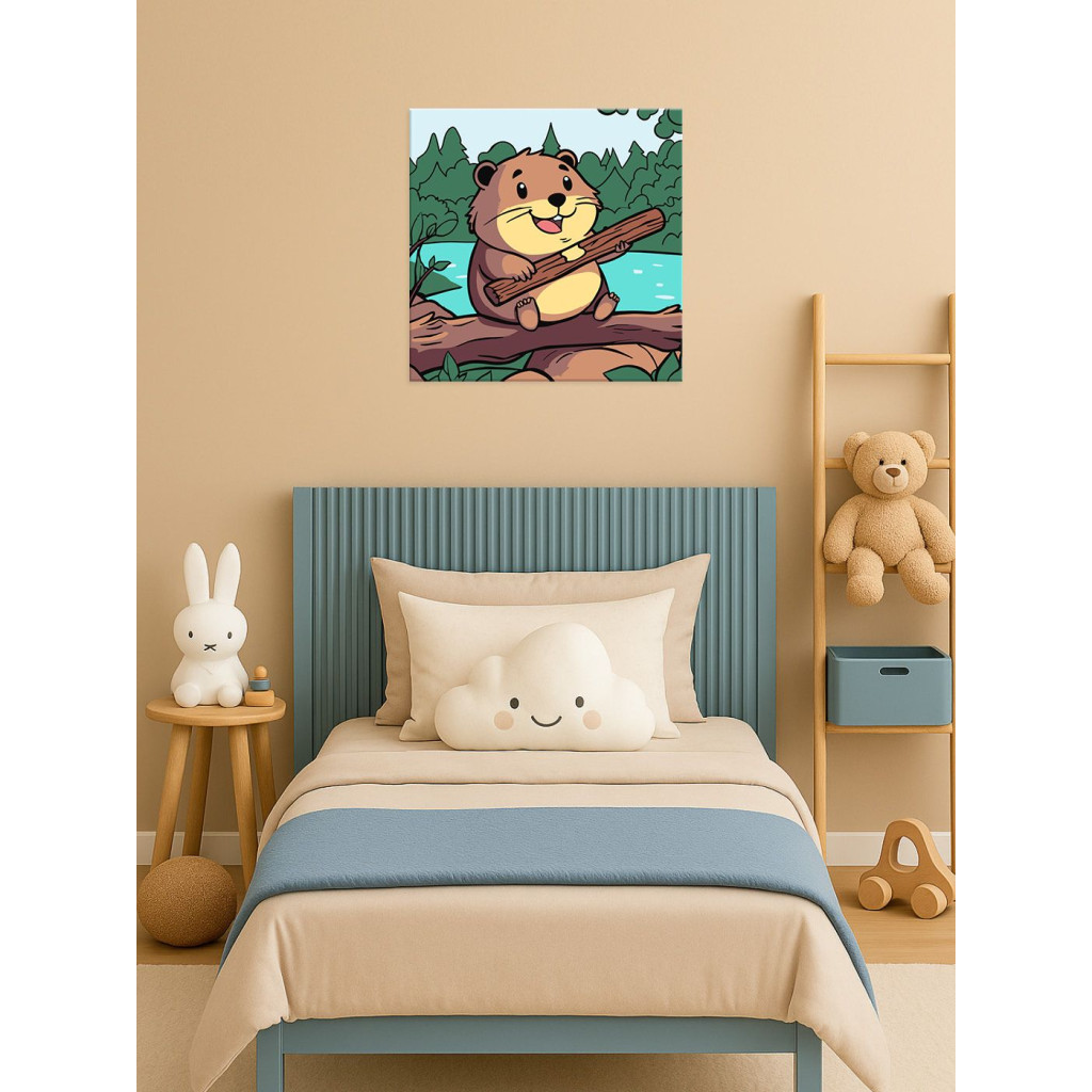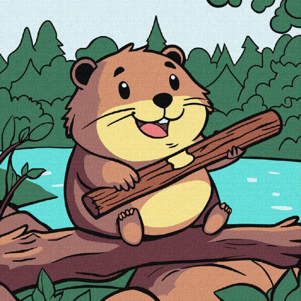 KHO1086 Ideyka Картина за номерами - Веселий бобер 25x25 см, (на підрамнику, Ідейка KHO1086) ©art_selena_ua