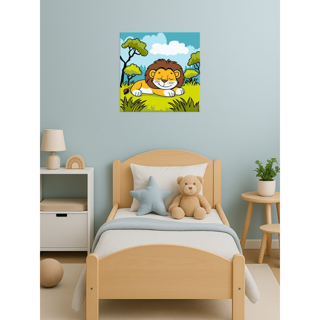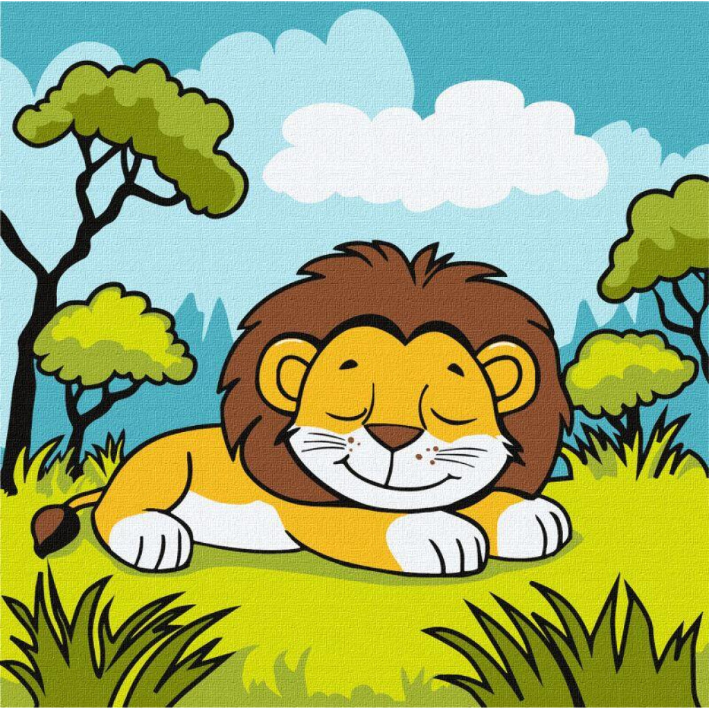 KHO1087 Ideyka Картина за номерами - Левеня у савані 25x25 см, (на підрамнику, Ідейка KHO1087) ©art_selena_ua