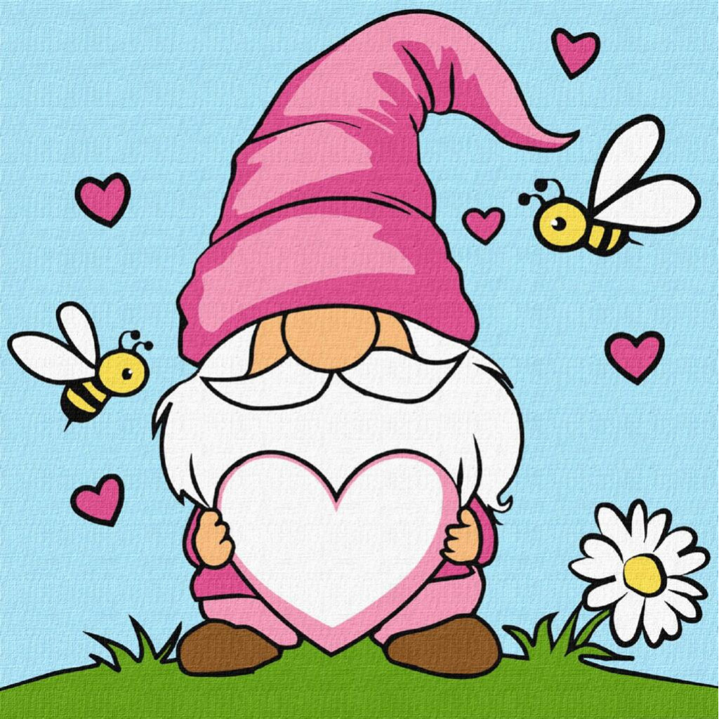 KHO1179 Ideyka Картина за номерами - Закоханий гном 25х25 см (на підрамнику, Ідейка КНО-1179) ©art_selena_ua