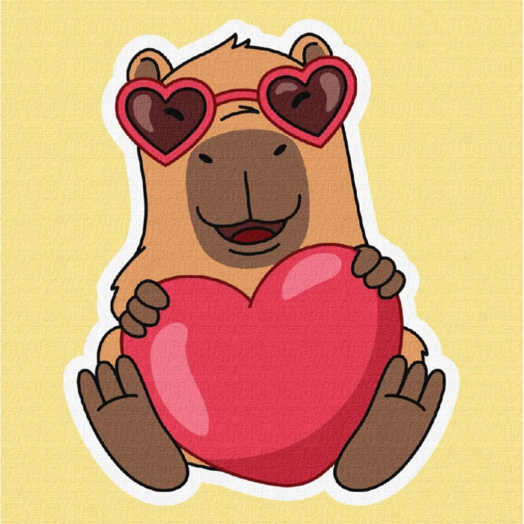 KHO1349 Ideyka Картина за номерами - Капібара та серце 30x30 см, (на підрамнику, Ідейка KHO1349) ©art_selena_ua
