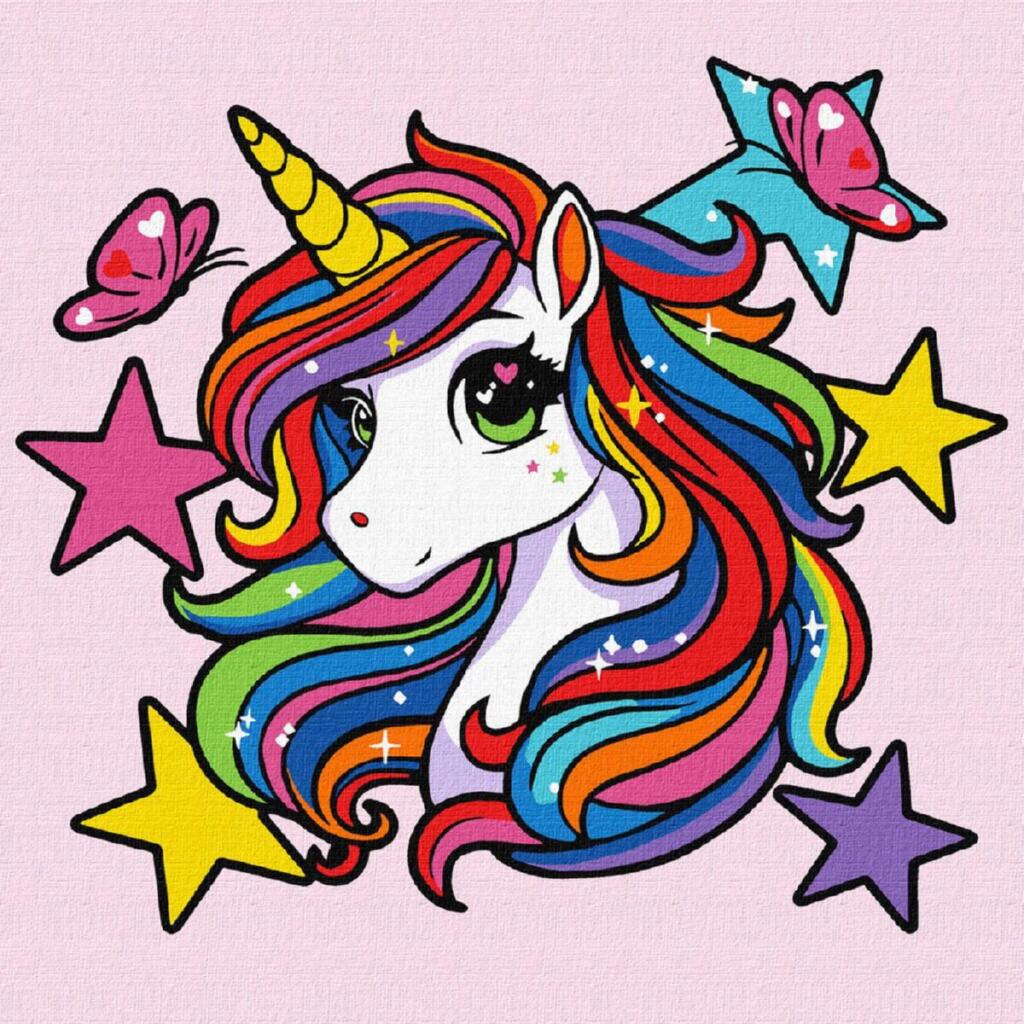 KHO1353 Ideyka Картина за номерами - Яскравий єдиноріг 25x25 см, (на підрамнику, Ідейка KHO1353) ©art_selena_ua