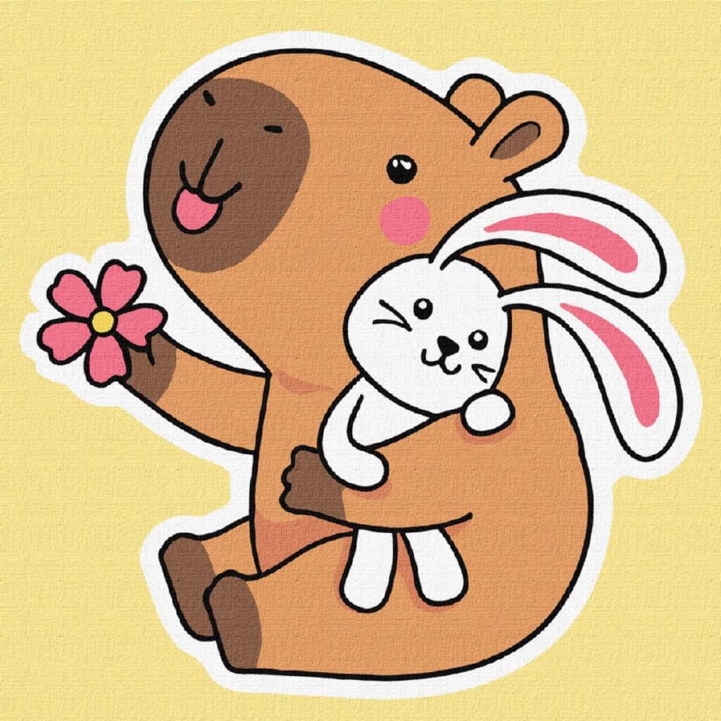 KHO1355 Ideyka Картина за номерами - Капібара із зайчиком 30x30 см, (на підрамнику, Ідейка KHO1355) ©art_selena_ua