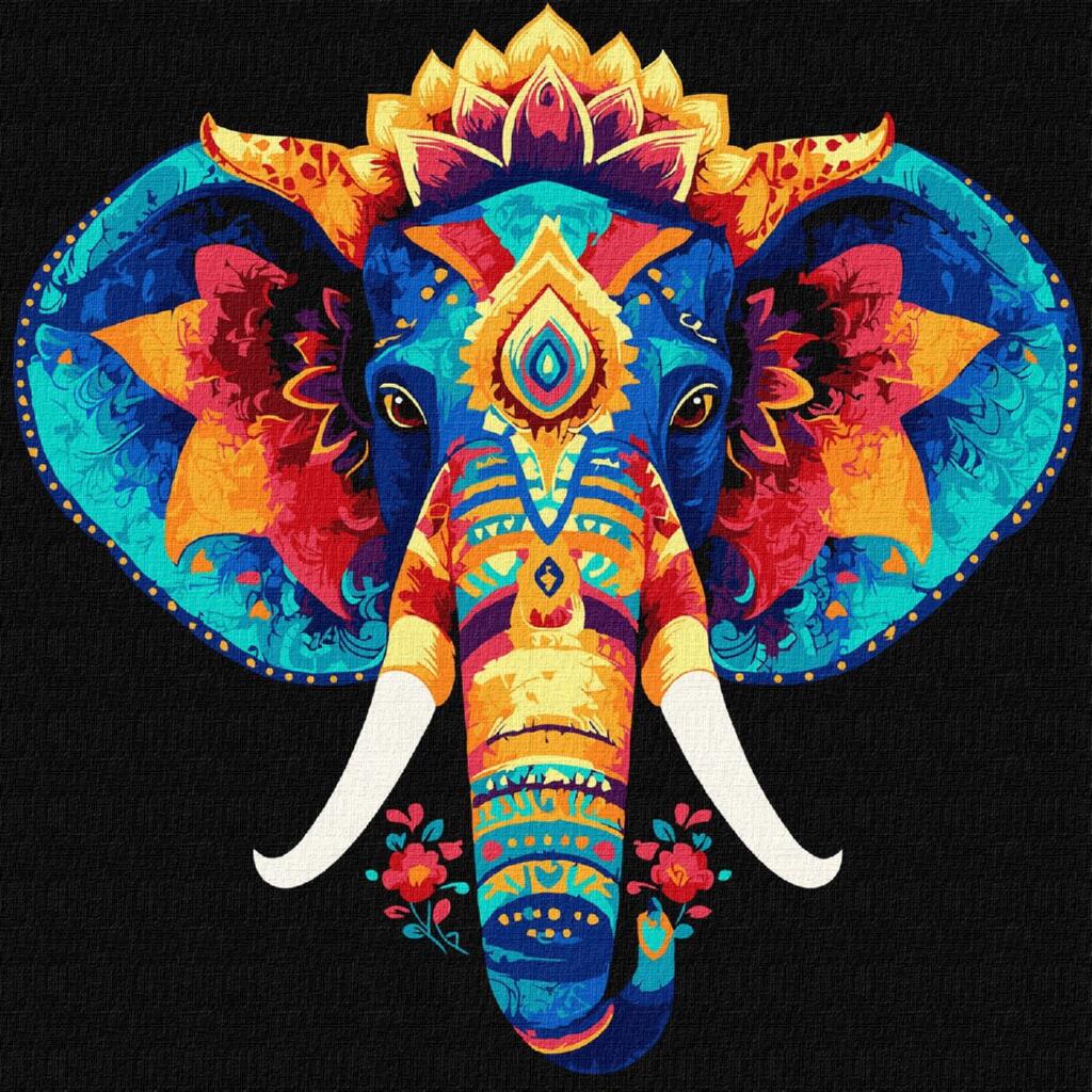 KHO5179 Ideyka Картина за номерами - Загадковий слон 30х30 см (на підрамнику, на чорному фоні, Ідейка КНО-5179)
