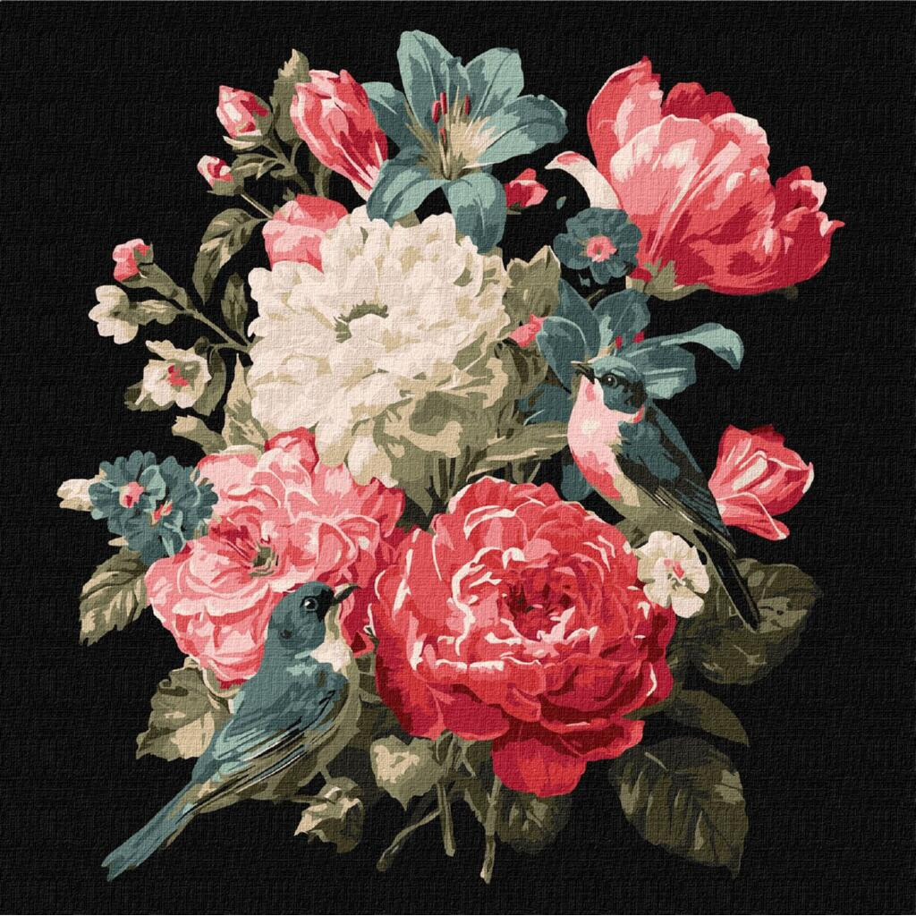 KHO5181 Ideyka Картина за номерами - Букет життя 30х30 см (на підрамнику, на чорному фоні, Ідейка КНО-5181)