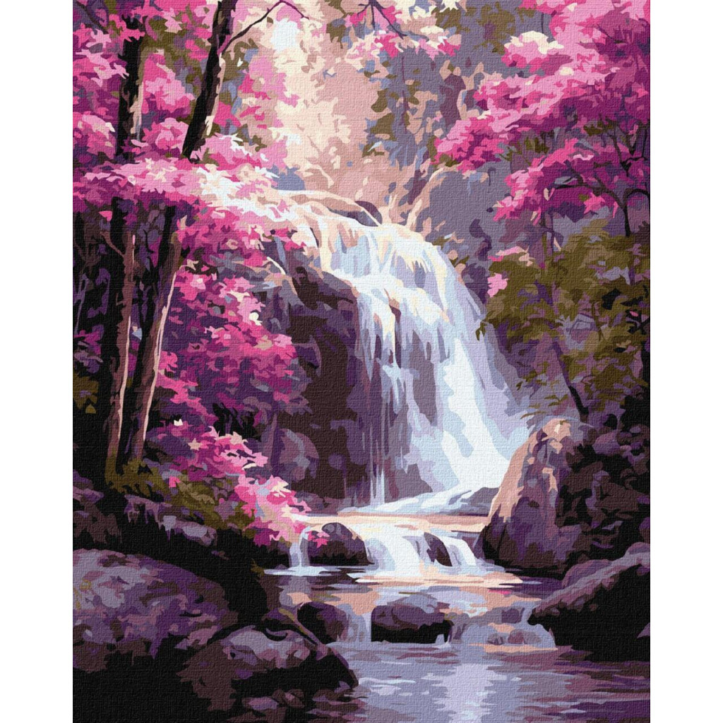 KHO6452 Ideyka Картина за номерами - Водоспад у рожевому лісі 50x40 см, (на підрамнику, Ідейка KHO6452) ©art_selena_ua