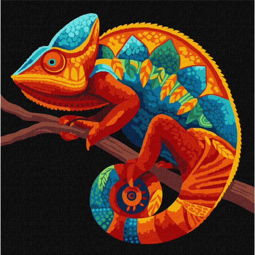 KHO6835 Ideyka Картина за номерами - Темний хамелеон 30х30 см (на підрамнику, на чорному фоні, Ідейка КНО-6835)