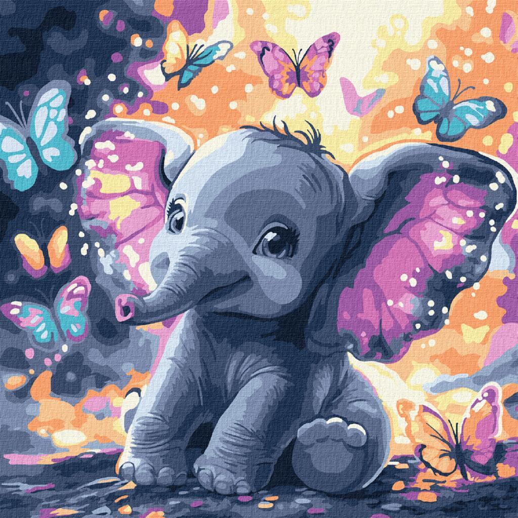KHO6894 Ideyka Картина за номерами - Безтурботний слоник з фарбами металiк 30х30 см (на підрамнику, Ідейка KHO6894)