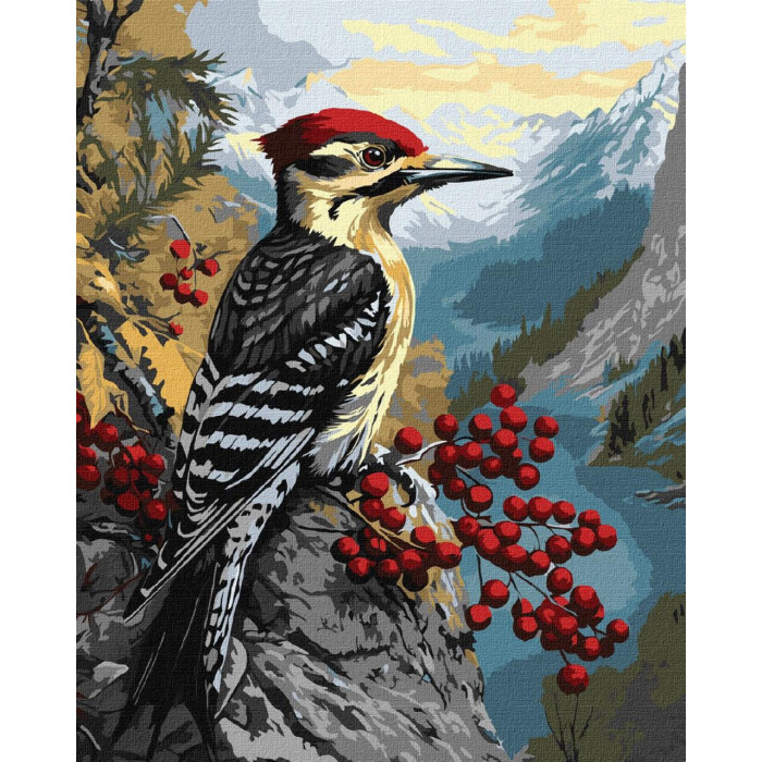 KHO6778 Ideyka Картина за номерами - Дятел на калині 40х50 см (на підрамнику, Ідейка КНО-6778) ©art_selena_ua
