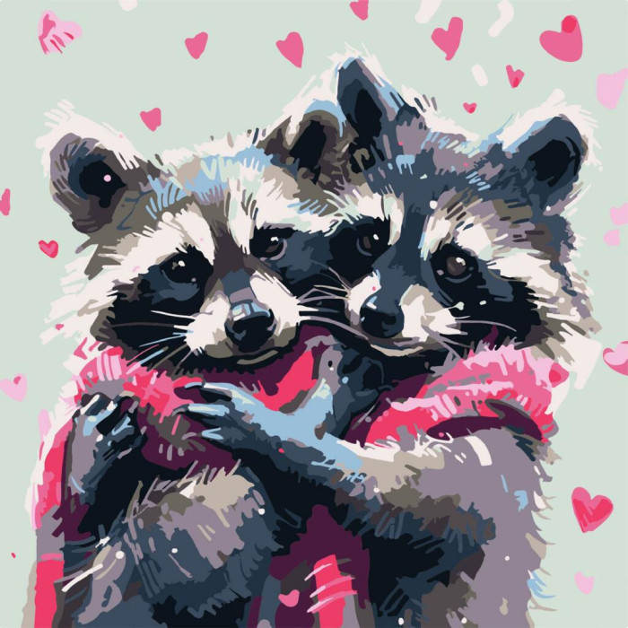 SH3030-26 Strateg Картина за номерами - Обійми єнотів 30x30 см (Стратег)