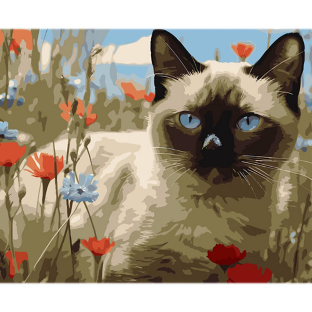 MZ027 Strateg Картина за номерами - Сиамська кішка серед польових квітів 40x50 см (на кольоровому фоні, Стратег)