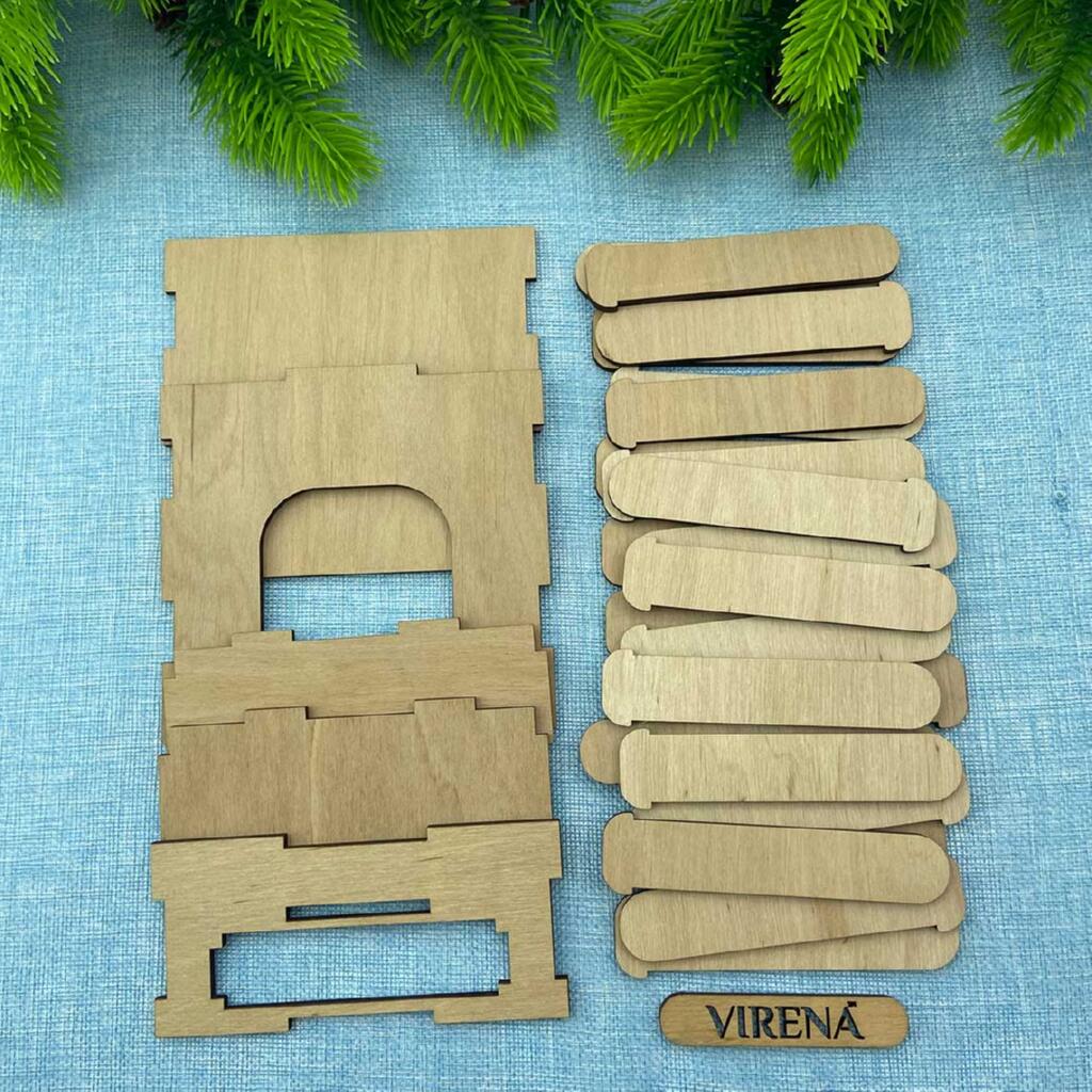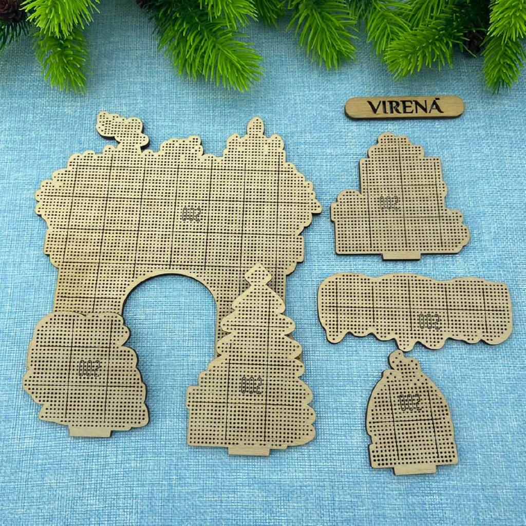 Календар складається з основної конструкції до якої кріпляться вишиті елементи. Також в комплект входять 24 дерев'яні пластини до яких додається листок з рекомендованими завданнями на кожен день. Адвент календар складається з комплекту фігурок з дерева (42 деталі).