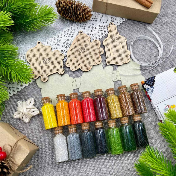 Набір для вишивки бісером дерев'яних новорічних іграшок від українського виробника "Virena".