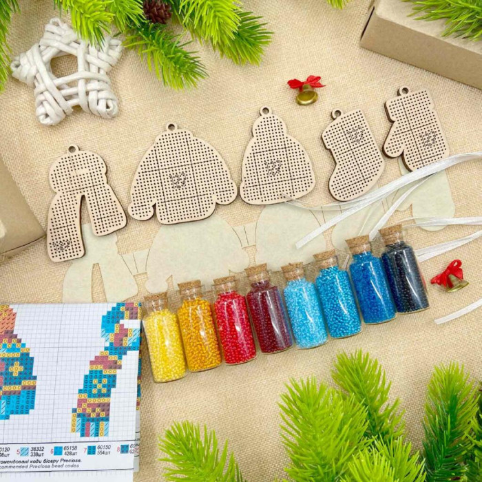 Набір для вишивки бісером дерев'яних новорічних іграшок від українського виробника "Virena".