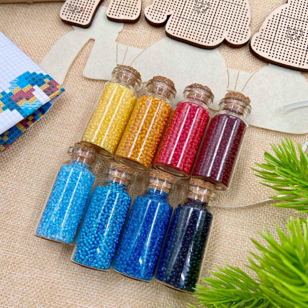 У наборі п'ять іграшок, вишиваються іграшки з двох сторін, кількість бісеру розрахована на дві сторони.